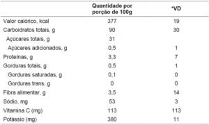 *% Valores diários com base em uma dieta de 2.000 kcal ou 8.400 KJ. Seus valores diários podem ser maiores ou menores dependendo de suas necessidades energéticas.